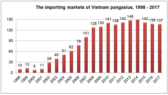 The 10 leading importing markets of Vietnam pangasius in the 10 years (2008-2018)