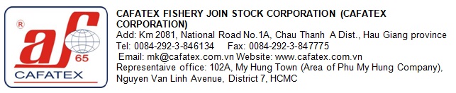 - For all Importers, Distributores, System of Supermarket and Restaurant, Hotel who have demand of importing seafood – Please kindly contact to us through above contact address or visit our website at www.cafatex.com.vn for selecting suitable items as your demand.