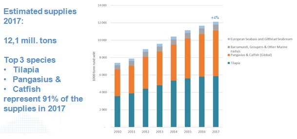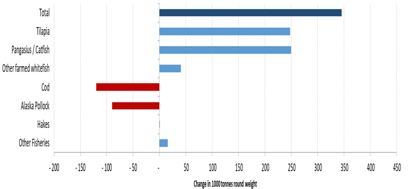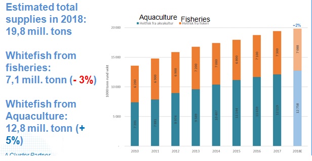 2018; +5% increase in supplies of whitefish from aquaculture - -3 % from fisheries