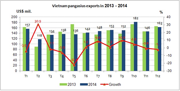 Total pangasius shipment in 2014 hit US$1.76 billion, up 0.4 percent year on year.