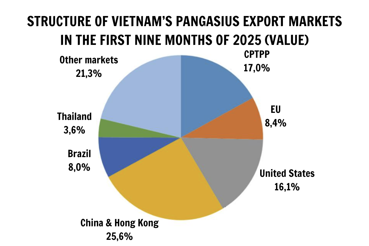 Vietnam’s pangasius export landscape in 2025 is thus undergoing a clear rebalancing. Traditional powerhouses like China and the U.S no longer hold absolute dominance; while CPTPP, South America and ASEAN are assuming greater significance. This shift highlights Vietnamese exporters’ adaptability - expanding into new markets while investing in value-added products aligned with global green and sustainable consumption trends.