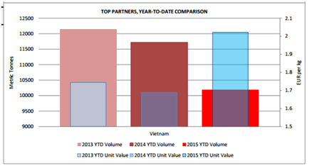 As the 4th biggest pangasius and catfish importing market in the EU, the UK has experienced the highest and most stable growth rates. The market started the year with a surge of 97.8% y-o-y. Four successive months from February till May, pangasius export growth rates ranged from 12% to 60.5% comparing to the same period of 2014.