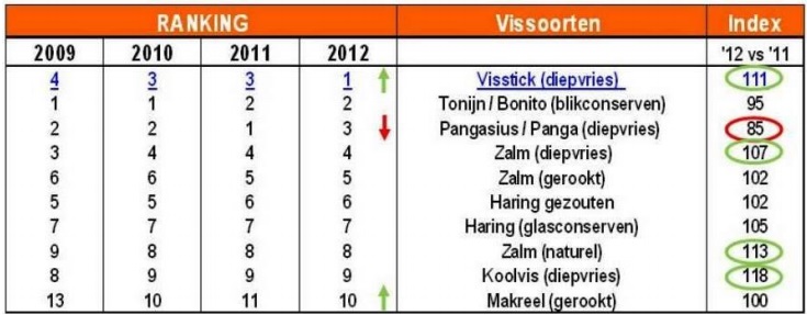 Figures from the Dutch Fish Bureau rank “fish sticks/fingers” as the #1 consumed product (by volume) in the Netherlands followed by canned tuna, Pangasius and salmon in 2012.