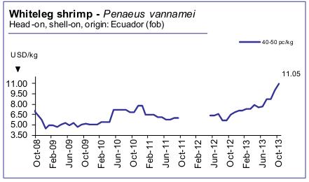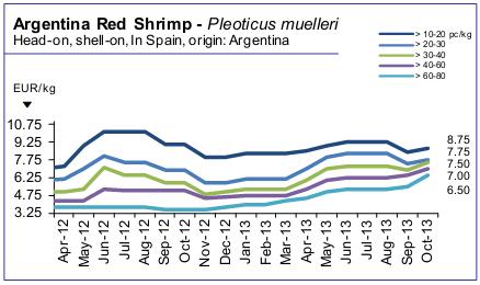 The vannamei shortage also affects other shrimp product prices. The strong Asian demand pushes all shrimp prices up including those of Argentine red shrimp, which is used as a substitute for vannamei.