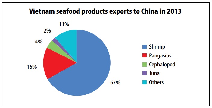 Shrimp accounted for a major proportion among Vietnam’s total seafood exports to China. In 2013, shrimp exports to the market reached US$381.1 million, making up 67 percent of Vietnam’s total seafood export value to the market.