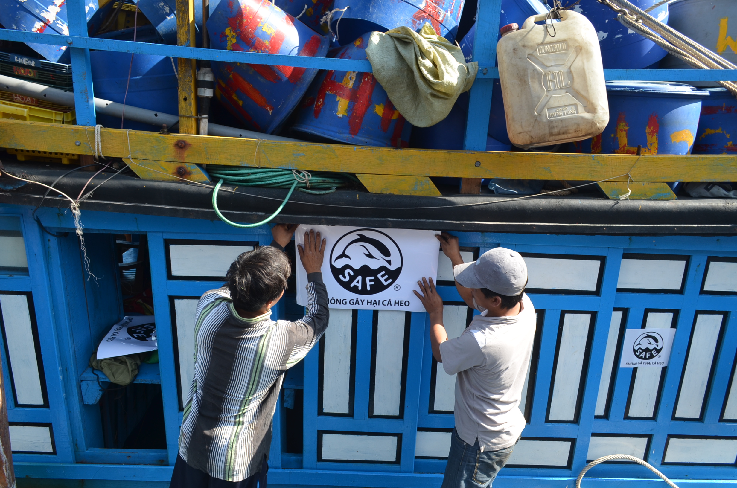 One of the key activities in this program is “Dolphin Safe” media program. This program includes printing “Dolphin safe” stickers, posting stickers on tuna fishing vessels, fishing ports, trading desks in fishing ports of 7 tuna fishing provinces namely Binh Dinh, Phu Yen, Khanh Hoa, Binh Thuan, Ba Ria Vung Tau, Tien Giang and Kien Giang.