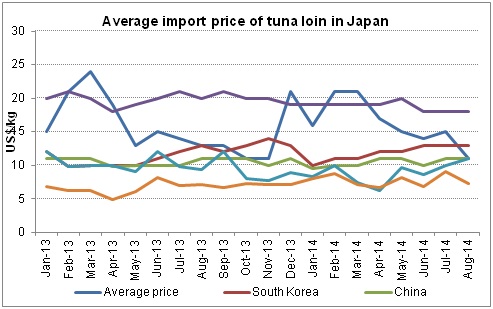 Tuna price was on declining trend. Tuna was sold at US$ 11/kg in August. Tuna from Vietnam is considered competitive in terms of prices.