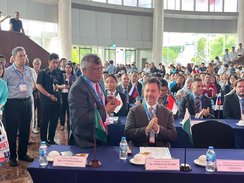 From VASEP, the ceremony was attended by Mr. Đỗ Ngọc Tài – Chairman, Ms. Nguyễn Ngô Vi Tâm – Vice Chairwoman, Mr. Huỳnh Minh Tường – Vice Chairman, Mr. Trương Đình Hòe – Advisor to the Executive Committee, together with ambassadors and representatives of foreign agencies and organizations from Indonesia, the EU, the US, Norway, Libya, Bangladesh, Russia, Pakistan, Iran, the Philippines, Taipei, Nigeria, Panama, Angola, Japan, and more.