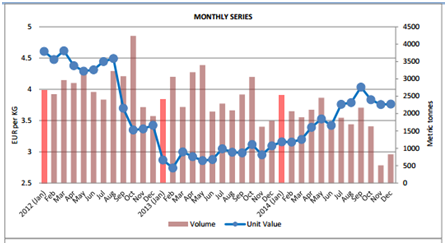 Graph 2: Frozen squid imports of Germany
