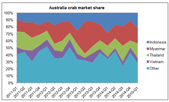 Vietnam is the fourth biggest crab exporting market to Australia, after Myanmar, Thailand and Indonesia but the average price of crabs from Vietnam is much lower.