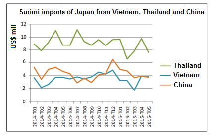 Data from International Trade Center ITC, through May, Japan imported surimi from 43 countries. Vietnam, occupying 7% of the market share, was in the top 5 exporting markets, after Thailand, India, Norway and China.