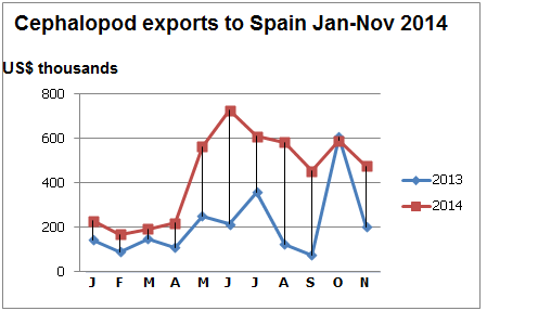 As reported, accumulated value of Vietnam cephalopod exports to Spain from January to November 2014 is US$ 4.8 million.