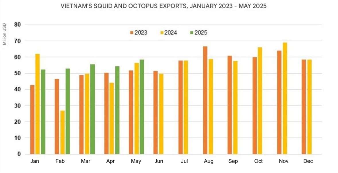 Forecasts suggest that Vietnam’s squid and octopus exports in the first five months of 2025 have made a strong start, laying a solid foundation for reaching the target of over USD 700 million for the full year. As the global market shows signs of recovery, enterprises need to invest more in deep processing, traceability, and expanding access to emerging markets to enhance the sustainability of this strategic industry. However, to achieve this target, businesses also need government support in facilitating the domestic raw material supply, and in promptly resolving bottlenecks related to the certification and verification of harvested seafood.