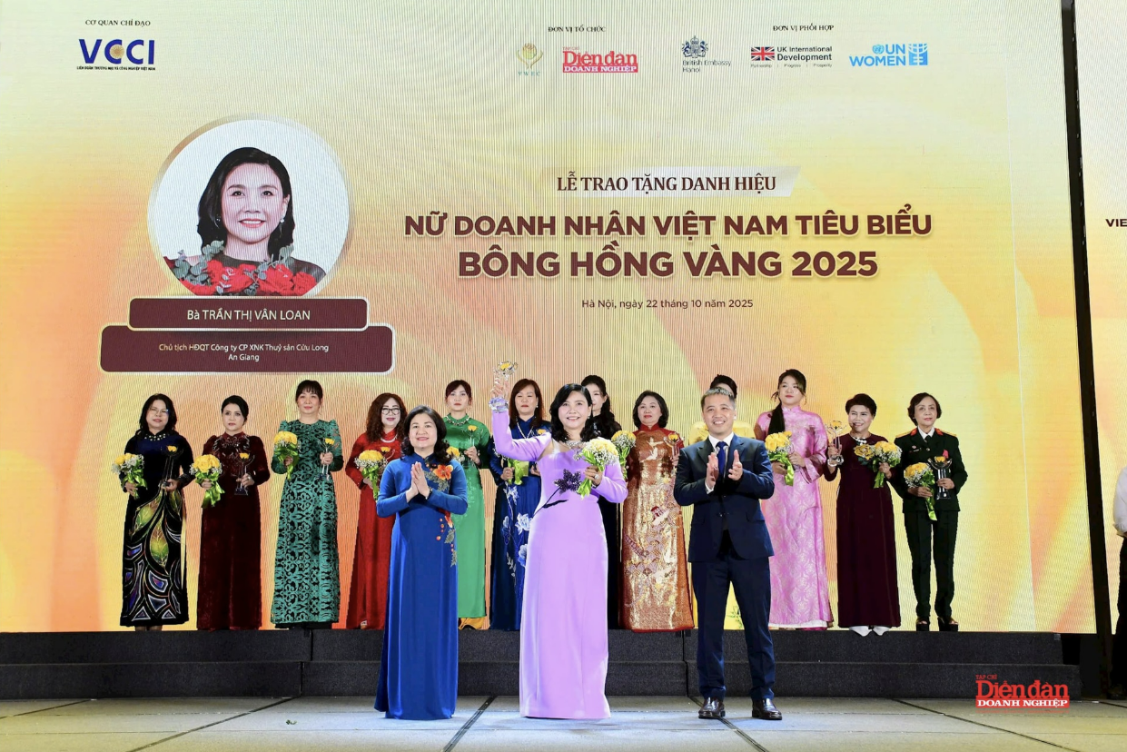 (seafood.vasep.com.vn) On the morning of October 22, 2025, in Hanoi, the “Outstanding Vietnamese Businesswomen – Golden Rose 2025” Award Ceremony was solemnly held, honoring 98 outstanding female entrepreneurs nationwide. Among them, Vietnam’s seafood industry proudly had five female leaders - VASEP member companies - recognized for their remarkable contributions to the sector’s development and the broader Vietnamese business community.