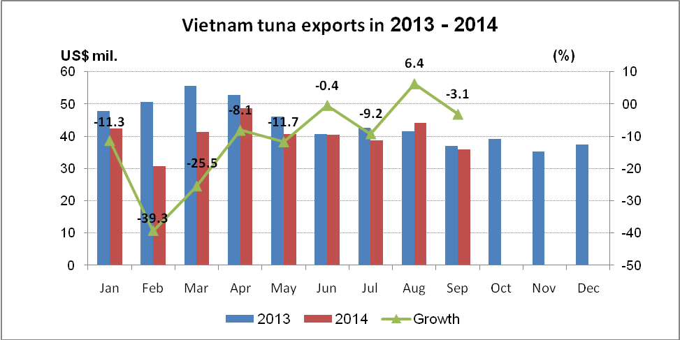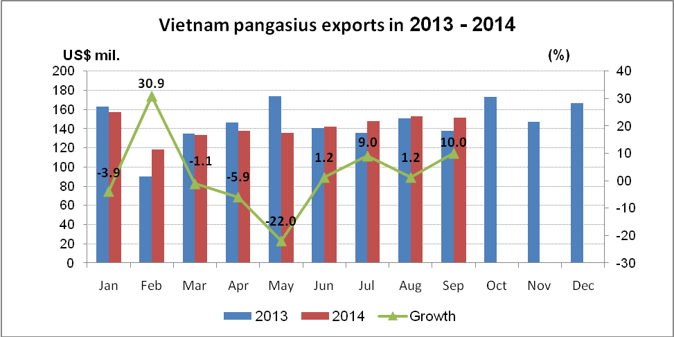 Fish exports started to recover in June and reported the gradual growth in QIII/2014: July up 9 percent, August up 1.2 percent and September up 10 percent.